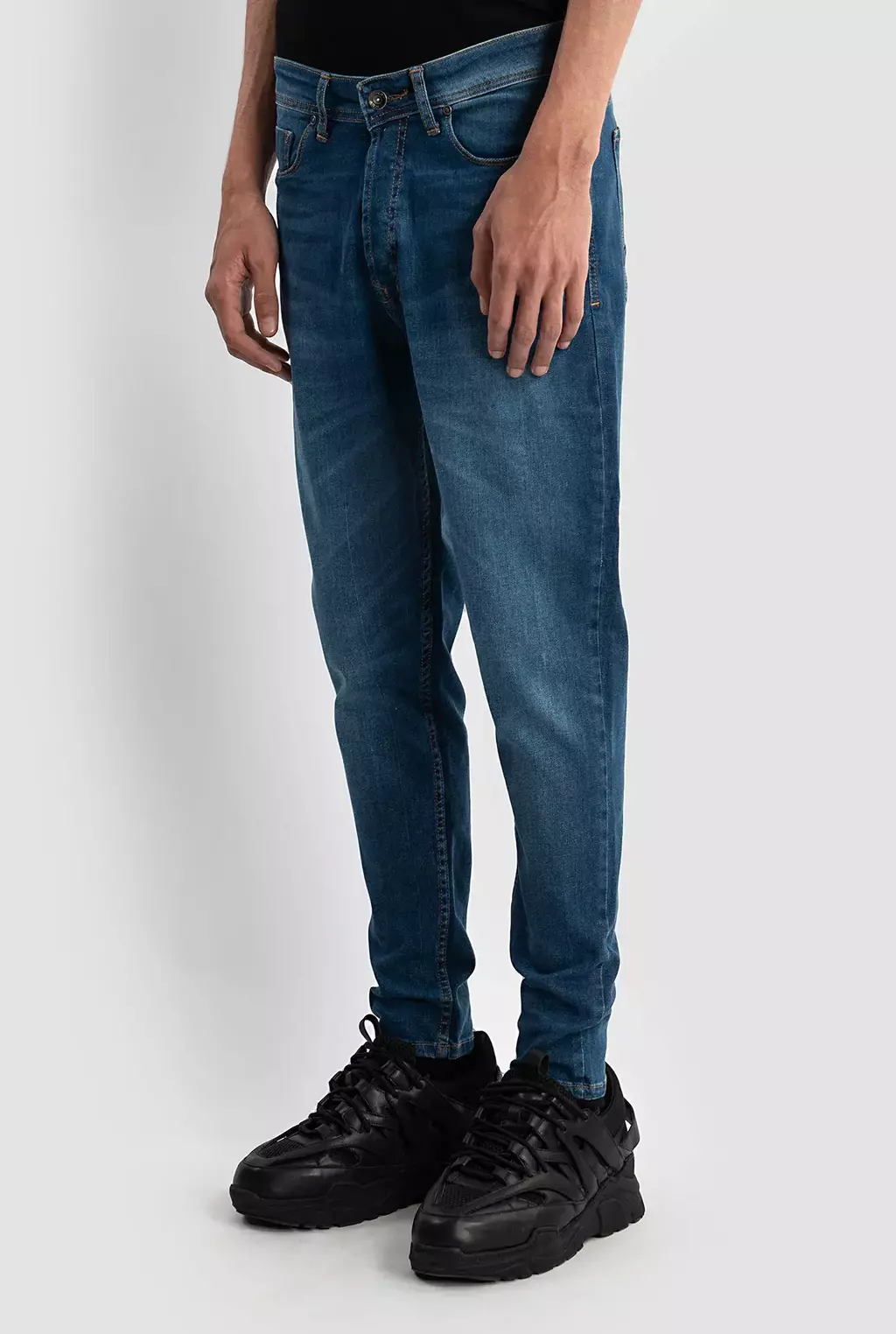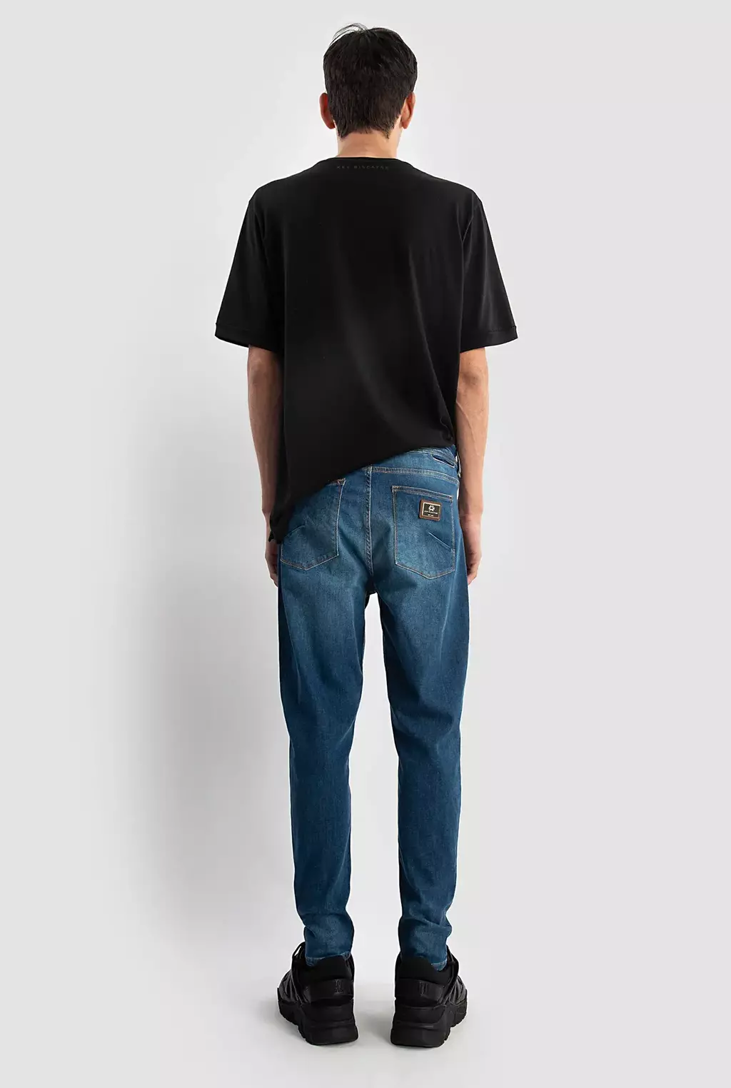 Jean confeccionado en algodón de alta calidad, diseñado con bolsillo trasero tipo ojal, chapón de marca personalizado y bordado distintivo en la espalda.
