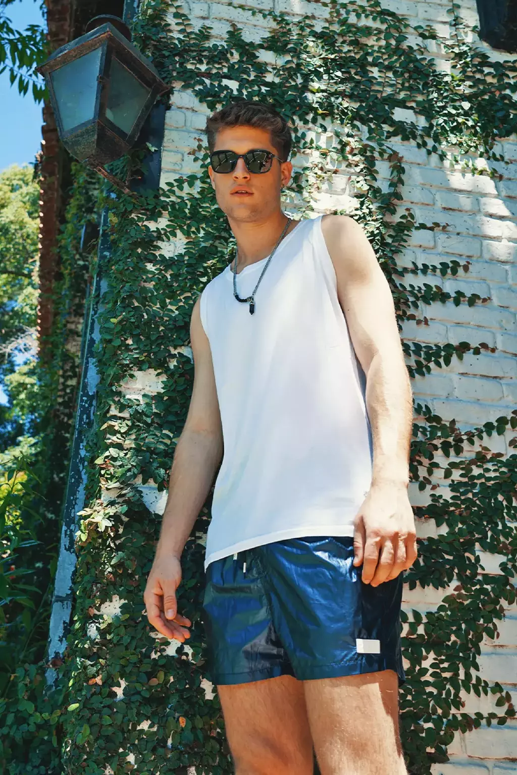 Remera sin mangas de calce clásico, cuello redondo. Realizada en jersey liso 100% algodón. Comunicación de marca con dome logo en espalda.