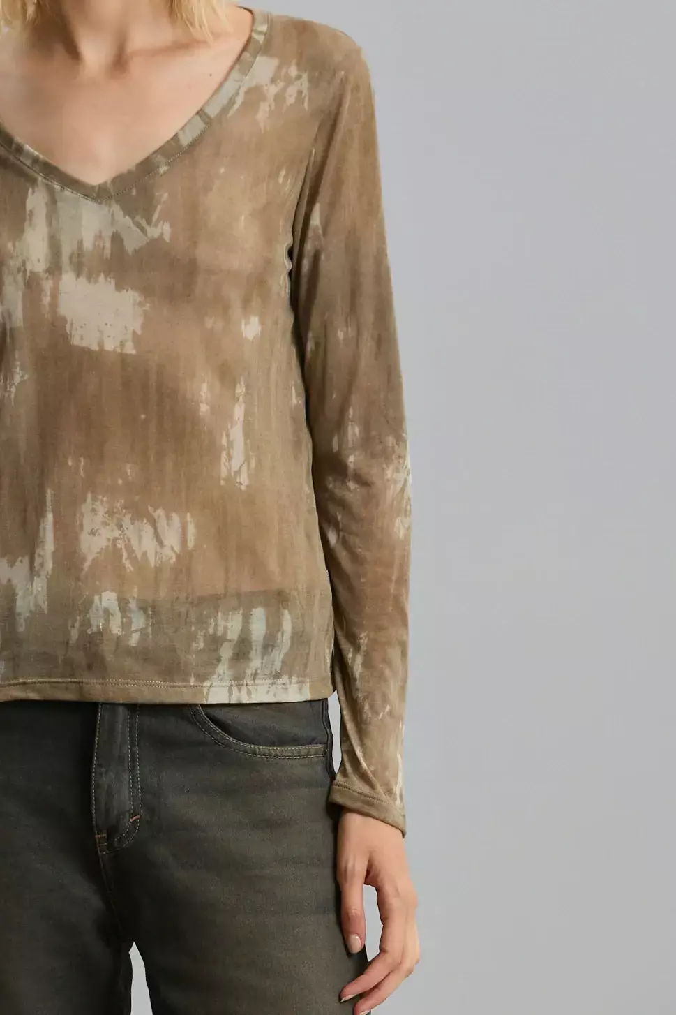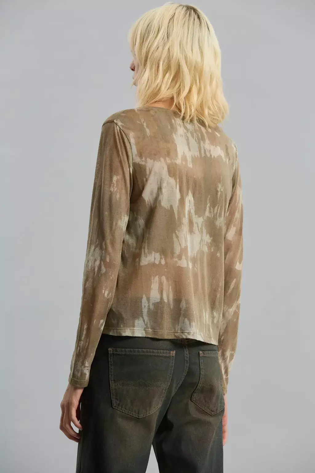Remera manga larga estilo tie-dye en tonos tierra