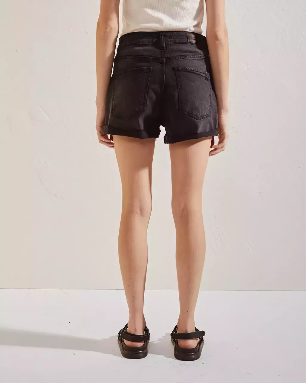 SHORT DE CALCE FIT, AJUSTADO AL CUERPO, POSEE BOLSILLOS TRASEROS Y DELANTEROS, ACCESO POR CIERRE Y BOTÓN EN DELANTERO. RUEDO AL CORTE DOBLADILLADO.