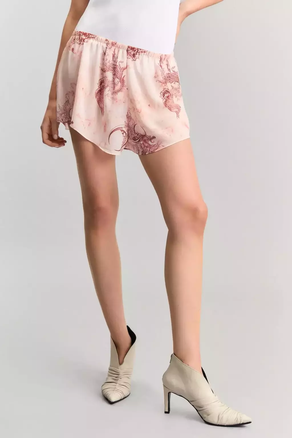 Short hecho en crepe liviano con diseño exclusivo de nuestra colección. Tiro medio con elástico en la cintura. Este short hace juego con el Top Timeless. Prenda romántica y fluida que remite a otras épocas. Ichu está usando en la prenda superior un talle S, y en la prenda inferior un talle 26. Sus medidas son: Altura 1.74 m. Busto 80 cm. Cintura 60 cm. Cadera 90 cm.