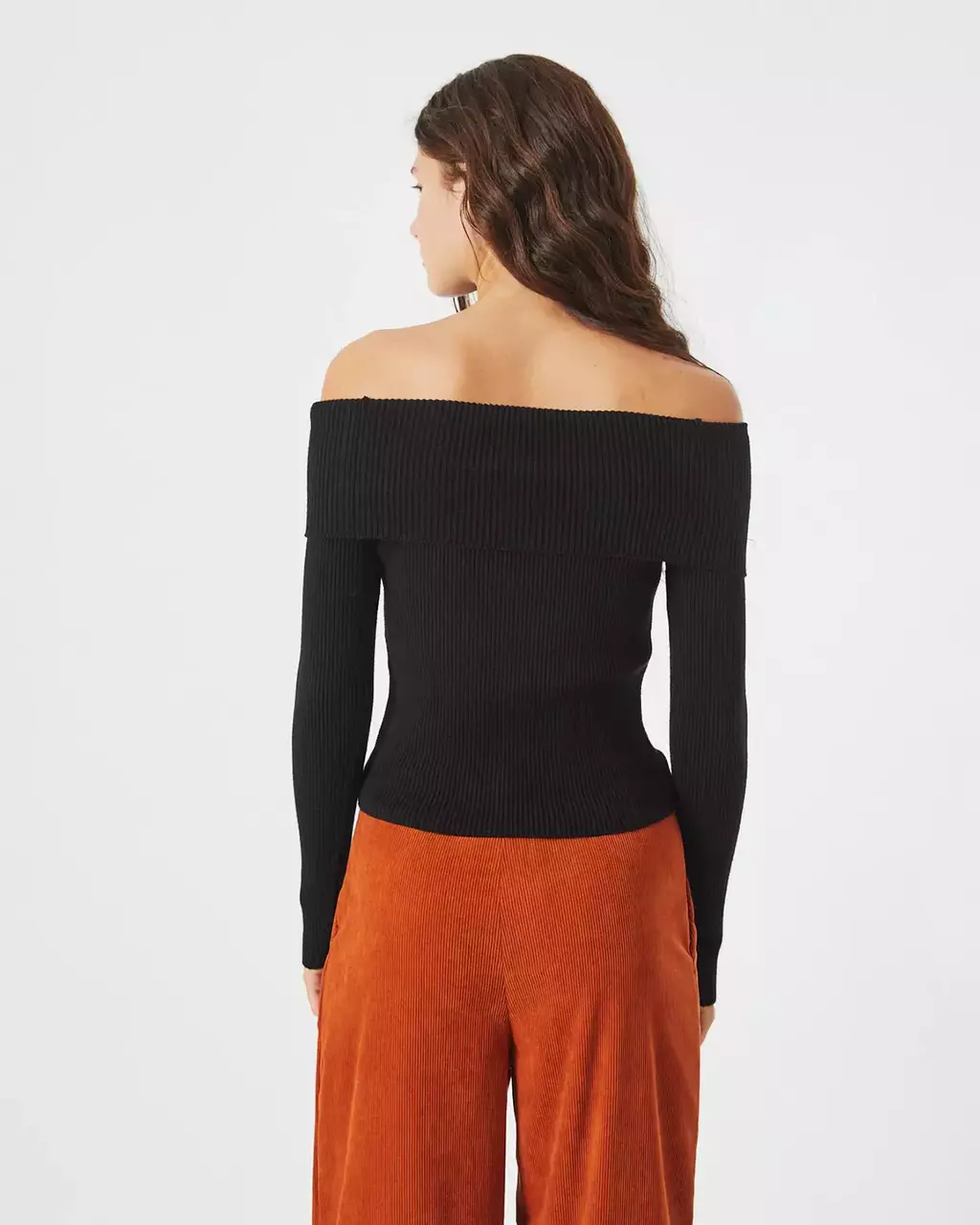 SWEATER AJUSTADO, SIN HOMBROS. LARGO A LA PRIMERA CADERA