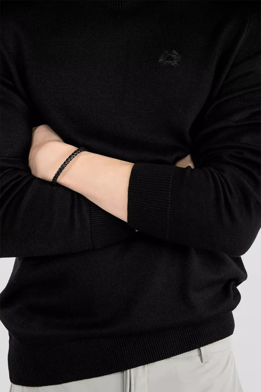 Sweater escote redondo, es una prenda elegante y cómoda que añade un toque sofisticado a tu estilo. Destaca por un detalle diseñado en el cuello delantero, que realza su apariencia. Las mangas menguadas no solo garantizan un ajuste impecable, sino que también le confieren una caída natural y estilizada. Un bordado sutil de marca en delantero aporta un sello de autenticidad y calidad. Perfecto para cualquier ocasión, este sweater combina confort y diseño en una sola pieza.