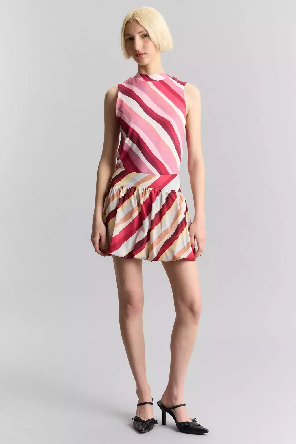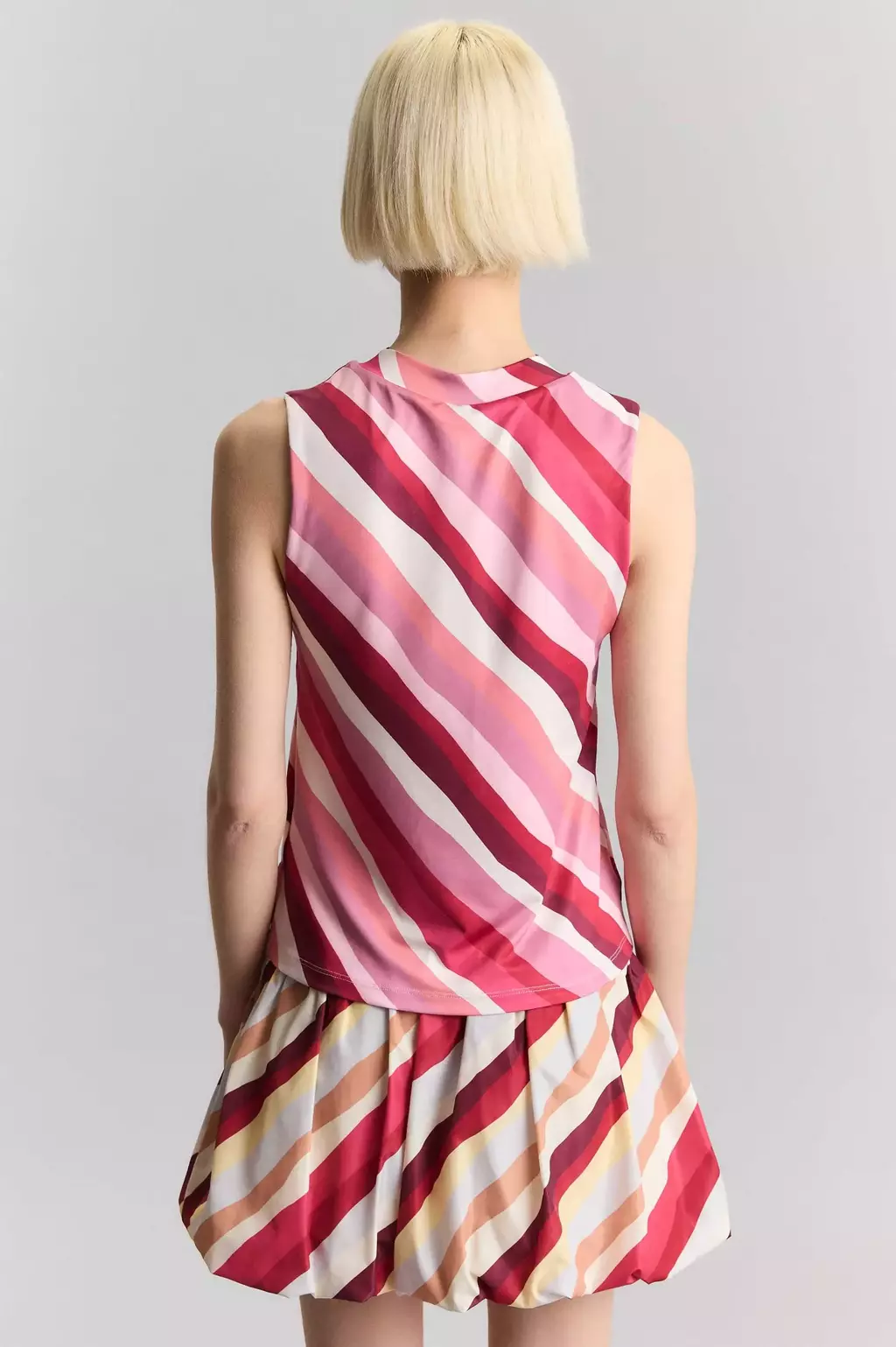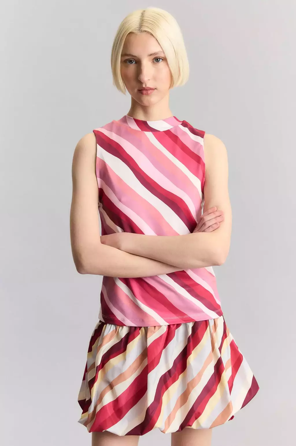 Top hecho en microfibra estampado con diseño exclusivo de nuestra colección. Es calce slim. Cuello alto. Viene forrado en la misma tela. Para un look divertido y moderno sugerimos usarlo con la Falda Diagonal Dream.